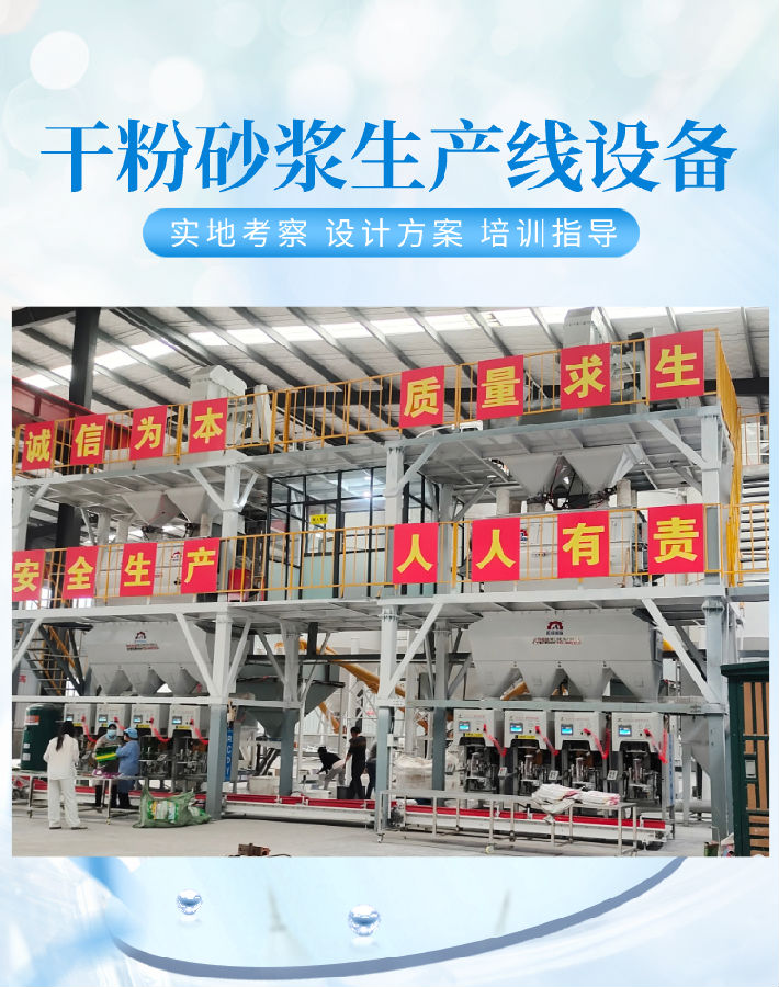 這套設(shè)備是安裝在湖北十堰,全自動(dòng)干粉砂漿設(shè)備主要包含儲(chǔ)存系統(tǒng)、待混系統(tǒng)、配料系統(tǒng)、混合攪拌系統(tǒng)、包裝系統(tǒng)、除塵系統(tǒng)、控制系統(tǒng),客戶可根據(jù)自身需求增加碼垛系統(tǒng)和散裝系統(tǒng)。