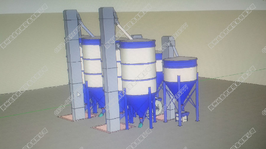 整體工藝流程中原料通過(guò)儲(chǔ)料罐進(jìn)行儲(chǔ)藏,開始生產(chǎn)時(shí),由螺旋輸送機(jī)將物料輸送到主機(jī)內(nèi),因主機(jī)本身就有計(jì)量功能,所以無(wú)人工就可實(shí)現(xiàn)原料配比,混合好的物料直接卸料到板鏈提升機(jī)提升到成品倉(cāng)進(jìn)行儲(chǔ)藏,儲(chǔ)料罐下方鏈接閥口包裝機(jī)進(jìn)行包裝,就此,一個(gè)批次生產(chǎn)完成。
