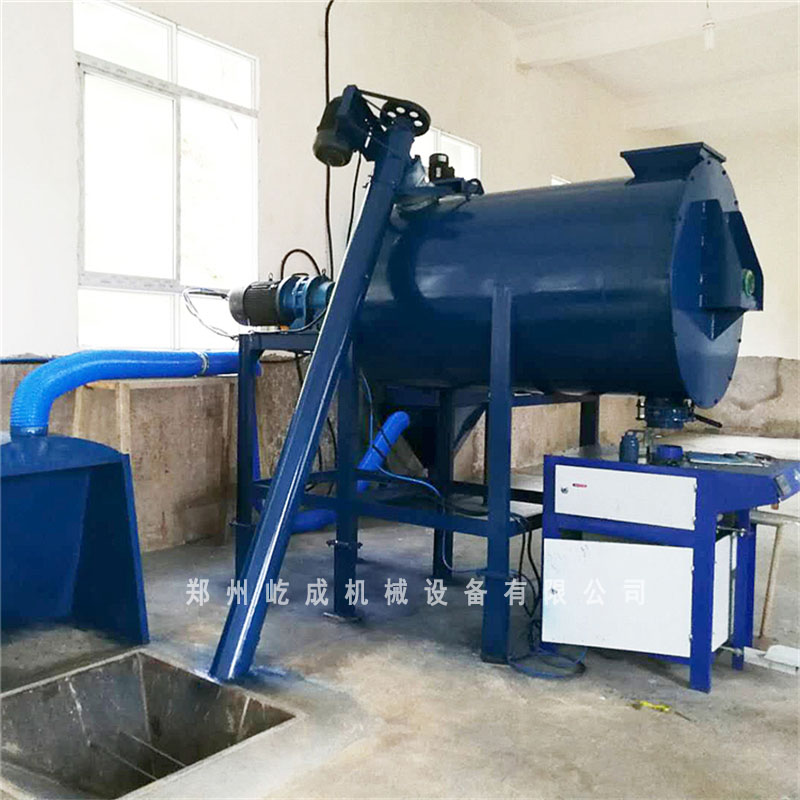 4、小型干混砂漿設(shè)備小型設(shè)備的攪拌機是采用臥式螺帶干粉混合機,而不是以上生產(chǎn)線中所用到的雙軸無重力混合機,適合小型企業(yè)使用,產(chǎn)量每天在15-40噸,設(shè)備投資低,對廠房要求低,使用時間長,而且對于化工企業(yè)來說,還可定制設(shè)備材質(zhì)。